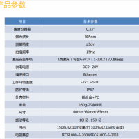 10米激光安全防護;激光防護等級1級;大視場、精確測量;工作溫度-25~50℃;防護等級IP67。電話/微信15152255397
