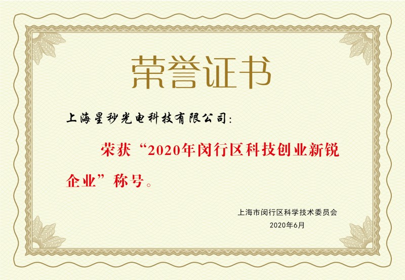 發證機構:   上海市閔行區科學技術委員會 發證時間 :   2020-06-01