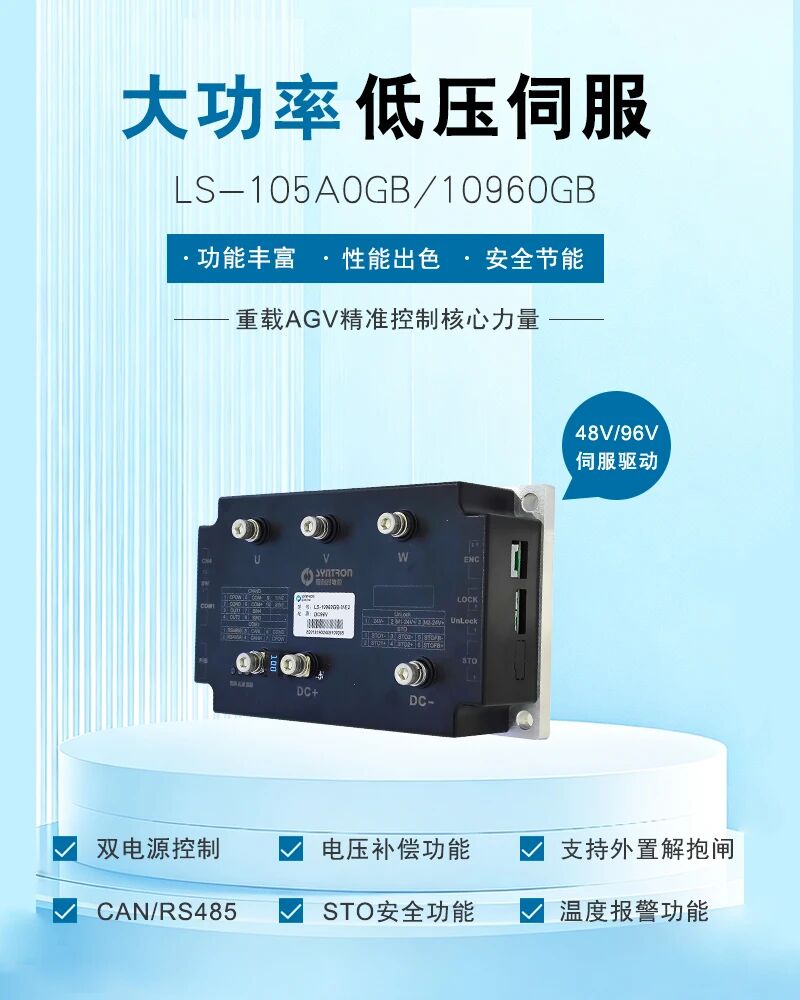 LS-105A0GB/10960GB低壓伺服驅動器采用主流的數字信號處理芯片,內置高精密的電機控制算法,可以實現多電機實時協同控制,確保各電機協調運動、精確同步,無論是轉彎、升降還是長距離運輸,有效提升重載AGV的作業效率與操作精度。