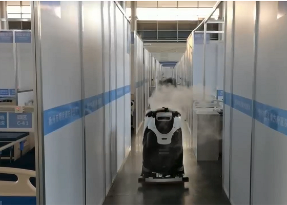針對方艙醫院消殺清潔需求,清潔機器人每天可完成至少2次整個方艙醫院的清潔和消殺工作,清潔地面的同時進行噴霧消殺。保持方艙醫院潔凈,有效降低清潔工勞動強度、降低交叉感染概率。