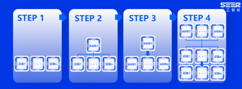 ● Step 4:所有 AMR 自動(dòng)與現(xiàn)場(chǎng)所有自動(dòng)化設(shè)備對(duì)接,完成整體驗(yàn)證。
