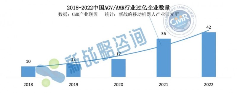 2022年度,中國市場AGV/AMR企業銷售額過億元的企業約42家,與2021年度的36家相比,新增了6家企業。