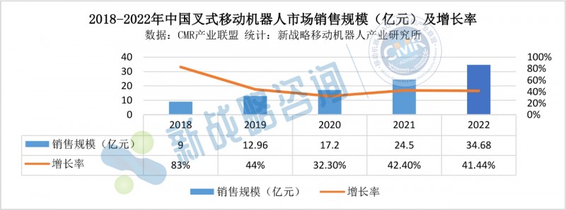 據(jù)CMR產(chǎn)業(yè)聯(lián)盟數(shù)據(jù)、新戰(zhàn)略移動(dòng)機(jī)器人產(chǎn)業(yè)研究所統(tǒng)計(jì),2022年中國(guó)叉式移動(dòng)機(jī)器人銷(xiāo)量達(dá)13300臺(tái),同比增長(zhǎng)66.25%,市場(chǎng)規(guī)模約為34.68億元,同比增長(zhǎng)41.55%。