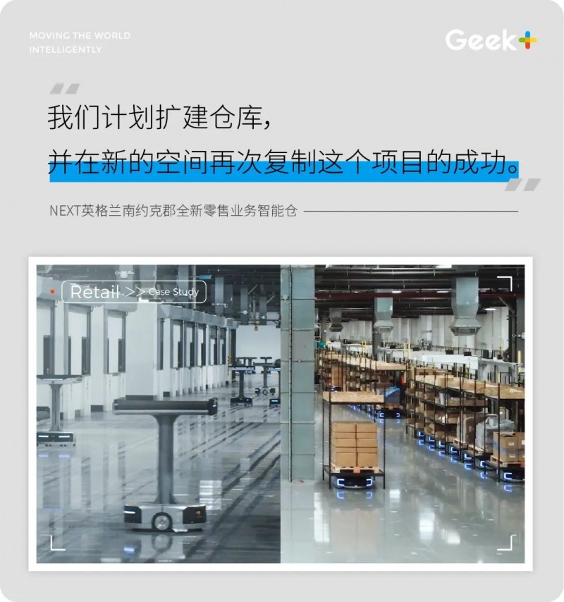 NEXT駐場經(jīng)理Liam Jenkinson表示:“與極智嘉的合作給我們帶來了非常積極的體驗,不論是從一開始還是后續(xù)持續(xù)的支持過程中。極智嘉的揀選和分揀系統(tǒng)提供的靈活性對我們的運營至關(guān)重要,而我們的倉庫管理系統(tǒng)與極智嘉的機(jī)器人管理系統(tǒng)之間的整合也非常順暢。隨著我們業(yè)務(wù)的不斷拓展,我們計劃擴(kuò)建倉庫,并考慮在新的空間再次復(fù)制這個項目的成功。”