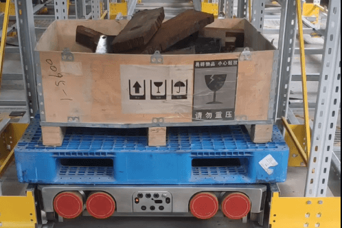 由于四向穿梭車是在立庫的軌道中行駛,為避免貨物間碰擦,這就要求四向穿梭車在貨物搬運時必須精準無誤。璣域智能為四向穿梭車加裝傳感器,有效檢測托盤姿態。一旦發現搬運貨物姿態偏置,超出安全范圍,四向穿梭車會立馬急停,并發出警報,由工人檢查現場狀態,恢復運行。