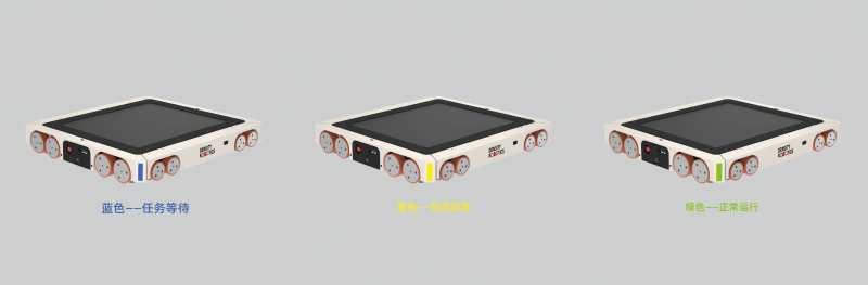 在車體四角設計狀態燈,黃色——異常;藍色——等待;綠色——正常,用戶第一時間可以通過警示燈顏色了解車體的狀態,保障立體庫的穩定運行。