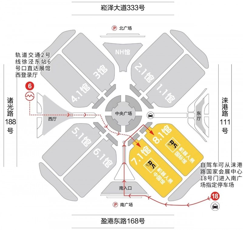 2.如果您自駕車(chē)可從國(guó)家會(huì)展中心18號(hào)口(淶港路段),進(jìn)入南廣場(chǎng)指定停車(chē)場(chǎng)。從南登錄廳即可到達(dá)7.1H&8.1H。