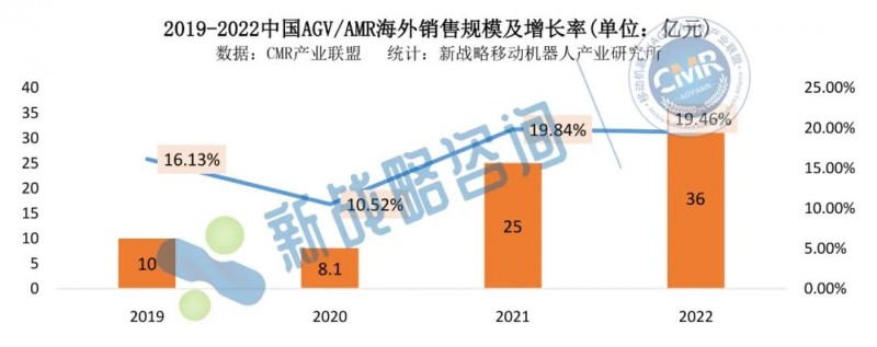 2019-2022中國AGV/AMR海外銷售規模及增長率