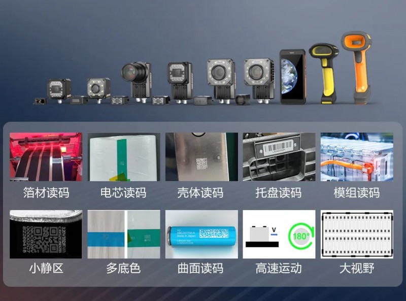 追溯鋰電生產(chǎn)過程是數(shù)智化解決方案的重要一環(huán),海康機器人由此推出了豐富的智能讀碼產(chǎn)品,輕松應(yīng)對多底色讀碼、圓柱電池曲面讀碼、高速運動讀碼、大視野讀碼等復(fù)雜場景。