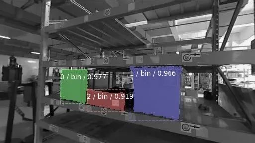 通過TOF相機(jī)對貨架上的料箱進(jìn)行識別定位,引導(dǎo)CTU機(jī)器人夾取料箱;相機(jī)內(nèi)部對料箱完成深度學(xué)習(xí)實(shí)例分割,結(jié)合深度信息完成精準(zhǔn)定位;可兼容不同顏色、材質(zhì)、工況的料箱,適配工作距離與角度范圍廣,邊緣誤差<2mm,角度誤差<0.2°。
