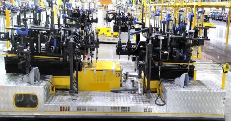 在該項目中,新松底盤合裝移動機器人同時肩負兩大日系品牌汽車的底盤合裝作業(yè)任務,機器人運用動態(tài)隨行技術,實現(xiàn)與車身的自主跟隨和同步,可以根據(jù)用戶工藝需要對機器人線路靈活調整,進一步提升生產(chǎn)柔性,滿足日系車廠嚴謹?shù)墓そ尘窈蛯ιa(chǎn)設備的嚴格要求。