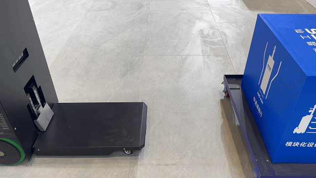 輕量化搬運代表 SFL-300L 采用單叉臂式設計結構,400mm 的車身寬度適應更多場景,搭配棧板識別相機,支持實時識別載具,現場烏龜車腳輪無固定槽情況下亦可實現穩定高效取放貨。