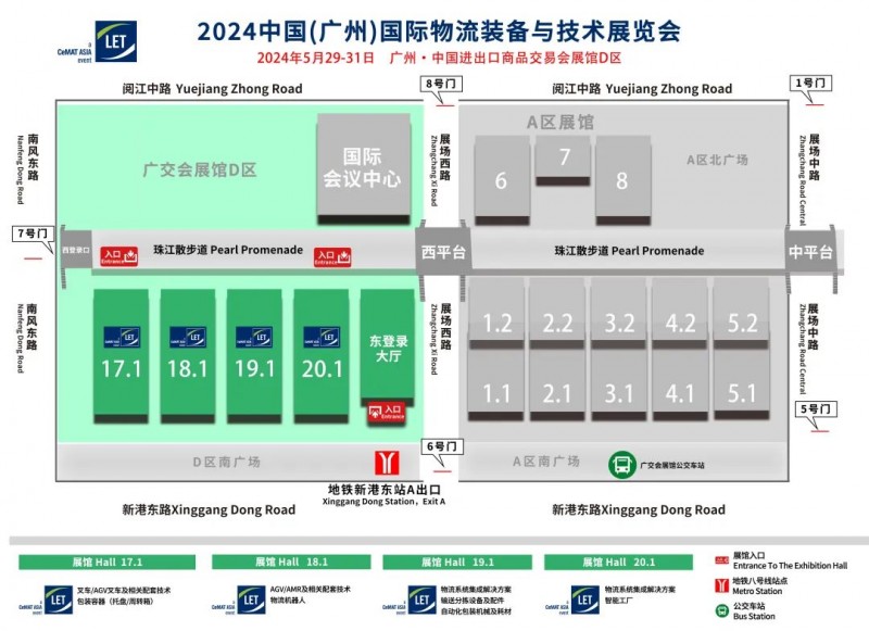 廣州地鐵8號線“新港東站A出口”,步行至廣交會D區展館6號門進入登錄大廳。