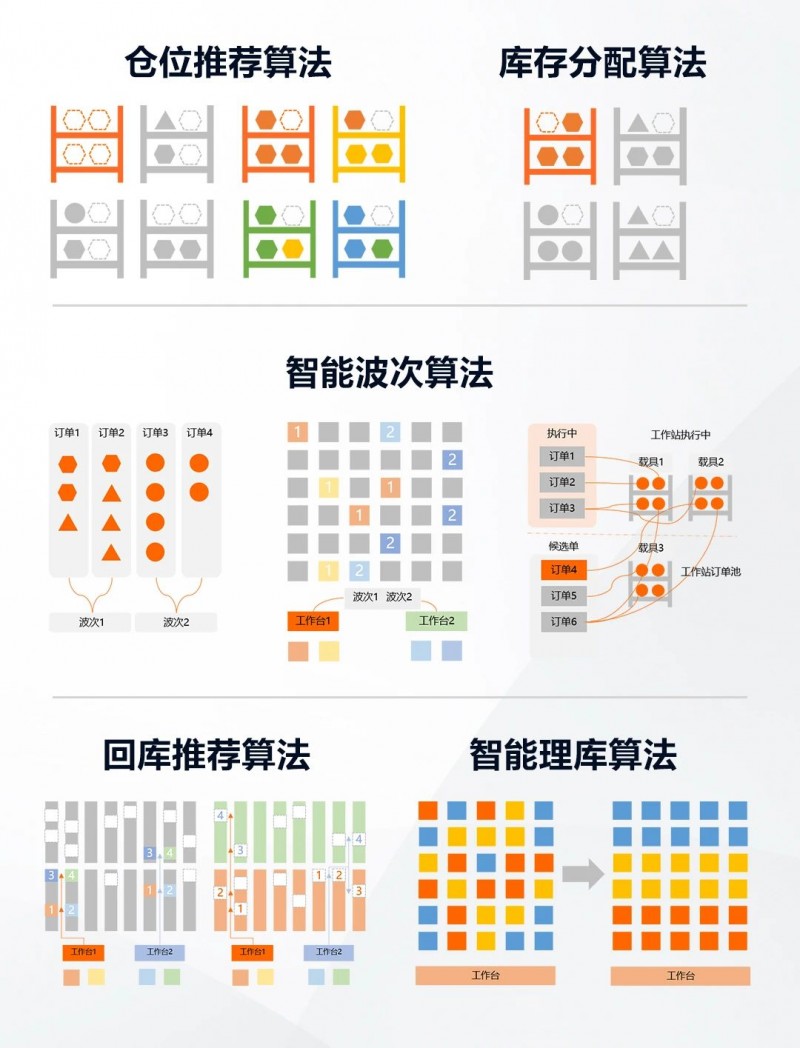 電商平臺(tái)、鞋服、生鮮冷鏈、醫(yī)藥等相關(guān)流通行業(yè)客戶共同有著對(duì)響應(yīng)效率、準(zhǔn)確率和柔性的極致追求。基于此,海康機(jī)器人打造iWMS-Logistics,在滿足庫(kù)存精細(xì)管理的基礎(chǔ)上,聚焦出庫(kù)效率提升。針對(duì)TOB、TOC、退貨等多業(yè)態(tài)訂單,iWMS-Logistics采用開(kāi)班出庫(kù)、波次分播出庫(kù),支持邊揀邊播、先揀后播的分播出庫(kù)模式。組波環(huán)節(jié)考慮出庫(kù)訂單優(yōu)先級(jí)、截單時(shí)間、單多品、SKU相似度等因素。同時(shí),支持按門(mén)店、按路線、按目的地等多種屬性分播,且支持集貨的暫存管理等。基于AI和深度學(xué)習(xí),iWMS-Logistics融合五大智能算法。入庫(kù)環(huán)節(jié)倉(cāng)位推薦算法,讓物料入庫(kù)合理分布;智能波次算法搭配庫(kù)存分配算法,考慮優(yōu)先級(jí)、庫(kù)存分布、關(guān)聯(lián)性等因素,實(shí)現(xiàn)庫(kù)存最優(yōu)分配和出庫(kù)站點(diǎn)均衡指派,助力日上免稅行實(shí)現(xiàn)日最大出庫(kù)15W行;智能理庫(kù)算法,在非作業(yè)時(shí)間段,由AMR智能理庫(kù),使每個(gè)器具調(diào)整到最佳倉(cāng)位,提高出庫(kù)效率。