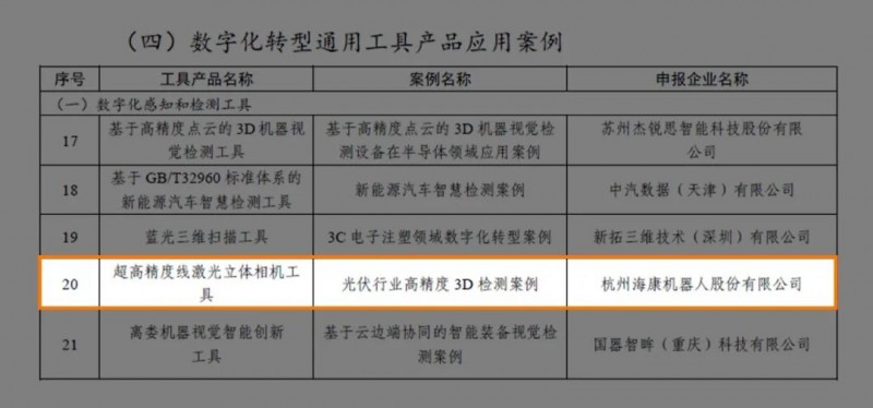 近日,工業(yè)和信息化部辦公廳公布2024實(shí)數(shù)融合典型案例名單,海康機(jī)器人“超高精度線激光立體相機(jī)工具-光伏行業(yè)高精度3D檢測案例”脫穎而出,入選其中的數(shù)字化轉(zhuǎn)型通用工具產(chǎn)品應(yīng)用案例名單。