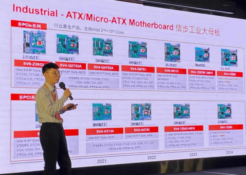 會(huì)上,葉總全面展示了信步的信創(chuàng)和ARM平臺(tái)的主板產(chǎn)品矩陣。多款不同平臺(tái)的信步工控主板已成為國家重點(diǎn)工程和新興行業(yè)產(chǎn)品的算力基石。