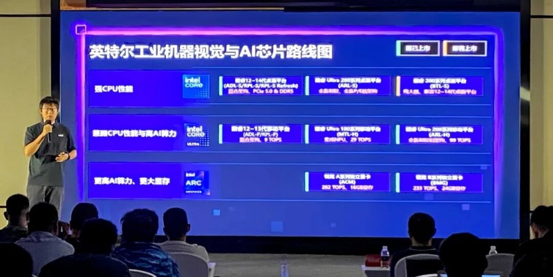 Intel中國產(chǎn)品經(jīng)理高暢則展示了Intel在機(jī)器視覺與邊緣AI領(lǐng)域的軟硬件新產(chǎn)品,通過多個(gè)行業(yè)案例展現(xiàn)出Intel軟硬件一體化賦能智慧工廠的全棧方案。