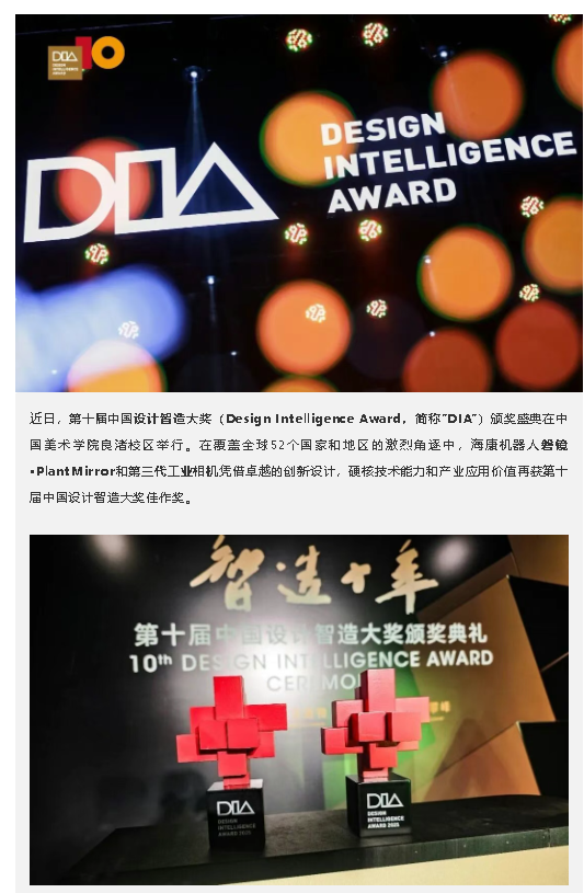 DIA十年,屢獲嘉獎 | 海康機器人兩款產(chǎn)品再獲第十屆中國設計智造大獎