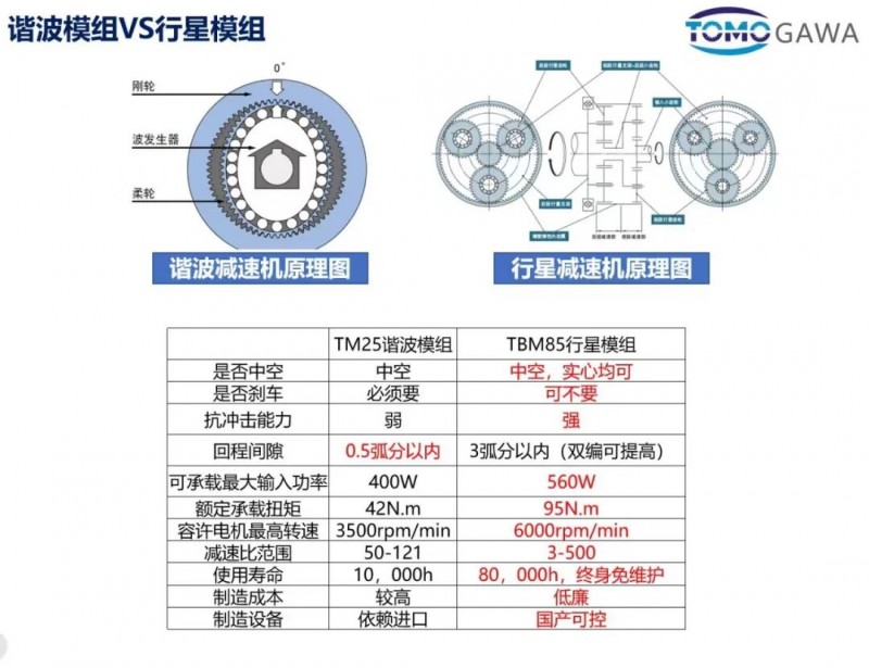 在這一點(diǎn)上,行星方案的特性逐漸顯現(xiàn)。相較諧波和擺線方案,行星減速器在傳動效率、剛性和抗彎能力上更具優(yōu)勢,更高的傳動效率意味著更低的發(fā)熱水平,也為后續(xù)的壽命和穩(wěn)定性留出了空間。同時,其加工和制造對設(shè)備的依賴度相對較低,國產(chǎn)設(shè)備即可滿足生產(chǎn)需求,使其在成本控制和規(guī)模化擴(kuò)展方面具備更高彈性。