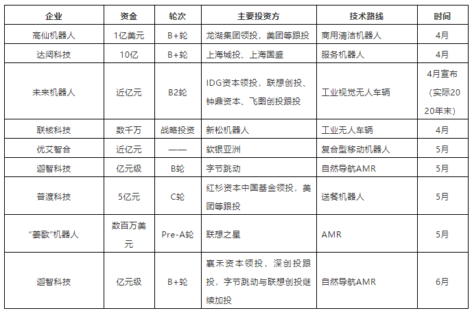 除工業應用移動機器人外,二季度獲得融資的還有聚焦于清潔機器人應用的高仙、云端服務機器人企業達闥科技以及送餐機器人企業普渡科技,疫情原因,商用移動機器人落地速度加快,經過前期的落地應用,部分技術成熟的企業脫穎而出,也得到了資本方的認可。