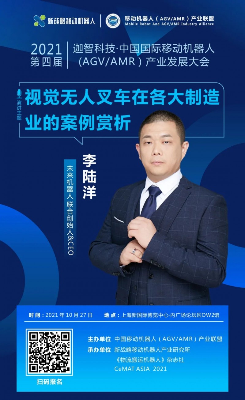 10月27日,由未來機器人冠名的《2021叉式移動機器人行業發展藍皮書》將在中國移動機器人(AGV/AMR)產業聯盟主辦的《第四屆國際移動機器人大會》上重磅發布。屆時,未來機器人聯合創始人&CEO李陸洋也將帶來“視覺無人叉車在各大制造業的案例賞析”,敬請期待!
