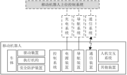 工業(yè)應用移動機器人主要由車體、驅動裝置、執(zhí)行機構、安全防護裝置、控制系統(tǒng)、電源裝置、導航裝置、通信裝置、人機交互系統(tǒng)及其他系統(tǒng)等組成。