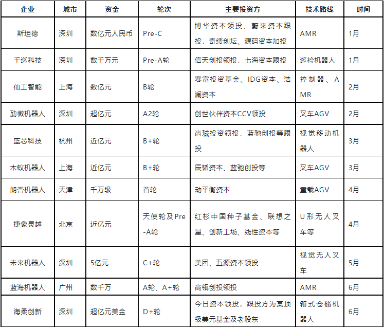從資金投入來看,大部分企業(yè)融資金額都在億元級以上,其中,海柔創(chuàng)新與未來機器人兩家企業(yè)在上半年拿到了行業(yè)最多的融資。